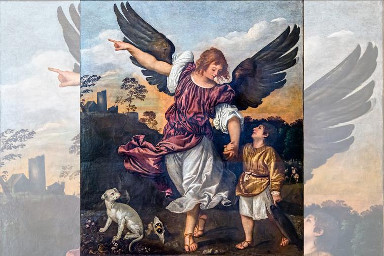 The largest part of the book’s narration, from the fifth chapter to the twelfth, tells how the Archangel, disguising himself as a man, accompanies the younger Tobias on a journey to recover a debt owed to his father; delivers him from various dangers, including a demon; and arranges for him to marry a kinsman’s daughter, which makes the boy very rich. Upon returning home, the boy heals his father’s blindness, following the instructions of the angel, who then reveals himself to them, saying “I am the angel Raphael, one of the seven, who stand before the Lord. … Peace be to you, fear not. For when I was with you, I was there by the will of God: bless ye him, and sing praises to him. I seemed indeed to eat and to drink with you: but I use an invisible meat and drink, which cannot be seen by men.”