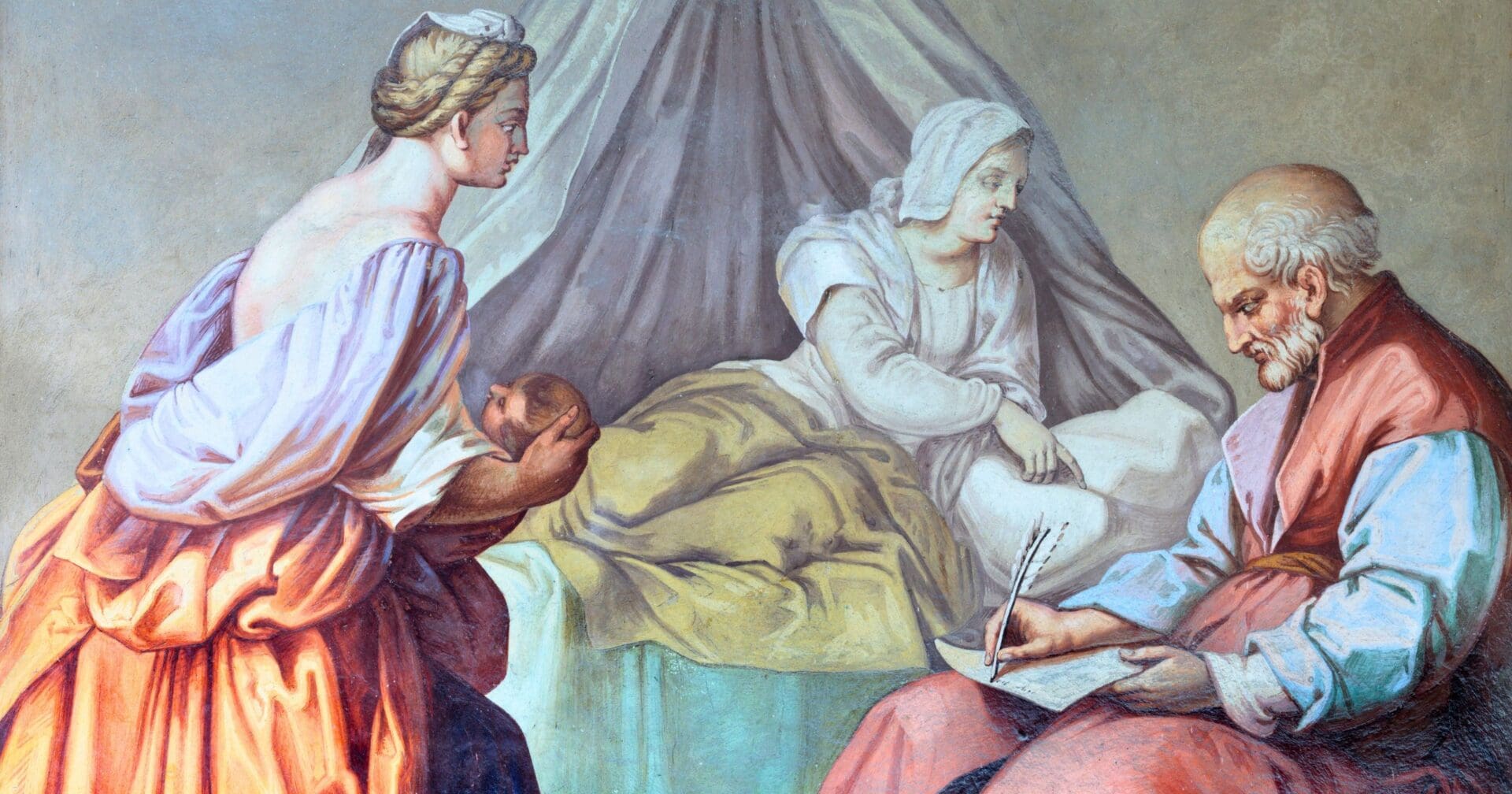 Zachariah was in the Temple when the angel Gabriel appeared announcing that Elizabeth would bear a son who would “bring back many of the people of Israel to the Lord their God.” When Zachariah expressed doubt at this because of her age, he was struck mute, and upon exiting the Temple it was clear to the people there that he had seen a vision. He remained mute until John’s birth, when he wrote out the newborn’s name.
