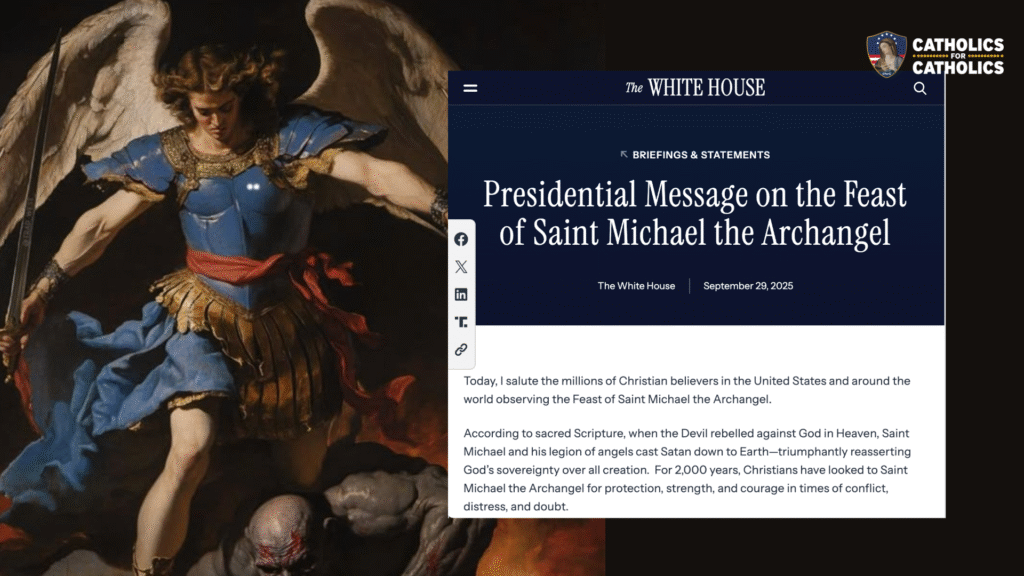 “Today, I salute the millions of Christian believers in the United States and around the world observing the Feast of Saint Michael the Archangel. According to sacred Scripture, when the Devil rebelled against God in Heaven, Saint Michael and his legion of angels cast Satan down to Earth—triumphantly reasserting God’s sovereignty over all creation.