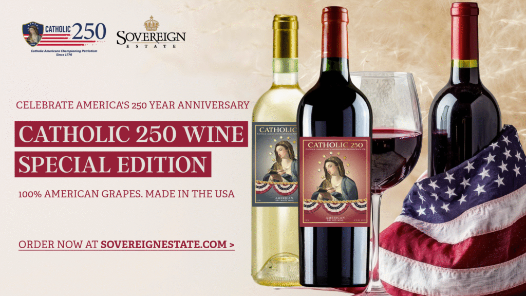 In celebration of Catholics For Catholics’ Third Year Anniversary and 250 Years of Freedom in America, an award-winning American winery will donate 50% of net sales proceeds from two unique wines to Catholics For Catholics in support of our mission to bring the Catholic faith back into the public square through Rosary rallies, powerful media, political action & more!