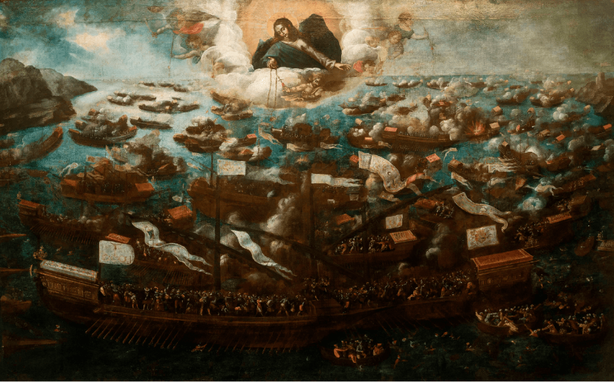 We often talk of “inclusivity” today as virtue and bellwether of how civilized we are. Today’s feast recalls that, against a monolithic Muslim juggernaut, a “league” of Catholics that normally up to this point had been bickering, if not fighting interminable internecine battles, put aside their Tower of Babel disaster-area and fought together not merely against a common foe, but under the banner of the Cross and the protection of their collective mother Mary. It’s hard to imagine today since we forget that Venice, Genoa, Sardinia and Sicily were not all part of one united Italy (which didn’t become a “unified” country until 1861) but discrete, independent kingdoms (or strangely, part of Spain, which had its own empire to administer). And then there were the Papal States, which were under the temporal power of the pope himself. If there was ever a time Catholicism became inclusive, the Battle of Lepanto, which we commemorate today under Our Lady of the Rosary, might be the place to look to for that virtue — and for victory.