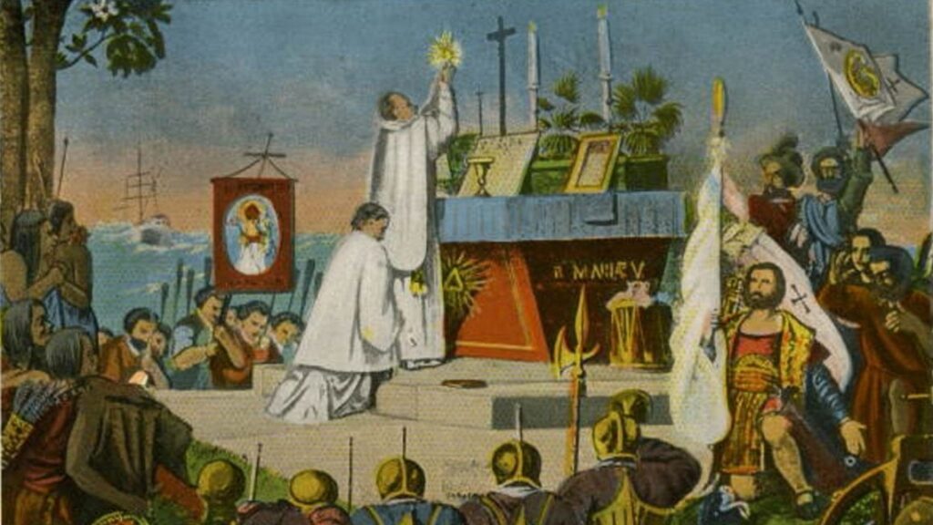 In Saint Augustine, there is a 250 foot cross that marks the spot Menéndez, Father Lopez, and the eight-hundred settlers landed, near the Mission of Nombre de Dios where Catholics often make pilgrimages. Every year, Catholics and locals dress up in costumes of that time to celebrate September 8th as Founder’s Day by celebrating Mass and reenacting the landing and the feast. This annual tradition keeps the history of Catholicism in North America, before English colonization, alive.