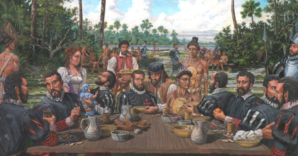 However, the first historical account of a “First Thanksgiving” actually took place on September 8, 1565, in present-day Saint Augustine, Florida. And this Thanksgiving Mass and Feast was celebrated by Indians of the Seloy tribe and Spanish Catholics.