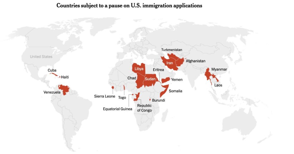 In addition, it also halts oath ceremonies for legal permanent residents from the countries in the list who were getting ready to become United States citizens.
