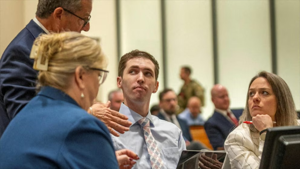 Tyler Robinson, 22, was fetched into the Provo courtroom donning an unassuming blue button down and tie, as his attorneys prepared to contend that the media shouldn’t be allowed to film his hearings by claiming they could potentially taint a jury. It was the first time he showed up in person in a Utah court, with his family present.