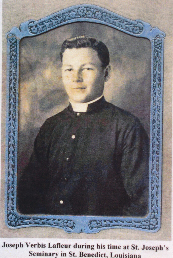 A year later, Father Colliard helped him join St. Joseph’s Minor Seminary in Saint Benedict, Louisiana. After six years at the minor seminary, Joseph completed his last five years of theological studies at Notre Dame Seminary in New Orleans, Louisiana. On April 2, 1938, Father Joseph Verbis Lafleur was ordained at the Cathedral of Saint John the Evangelist in Lafayette, Louisiana. His first assignment was at Saint Mary Magdalen Catholic Church in Abbeville, Louisiana.