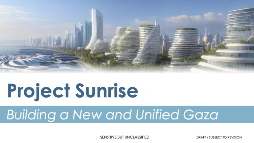 The plan could begin as early as two months from now – but that would require removing the remaining bodies still buried beneath an estimated 61 million tons of rubble. It does not appear that Project Sunrise includes plans for the estimated two million Palestinians that would be displaced.