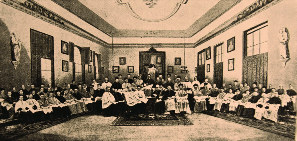 On November 7, 1791, Bishop Carroll hosted twenty-two priests at the First Synod of Baltimore, where he instructed his priests to sing or recite the Litany of the Blessed Virgin Mary before Sunday Masses and Masses on Holy Days. He administered Holy Orders to the first priest to be ordained in the United States, Father Stephen Badin. Bishop Carroll founded Georgetown College, now known as Georgetown University, in 1791. He recommended the introduction of various religious communities, such as St. Mary’s Seminary and College in Baltimore, Mount St. Mary’s College and Seminary in Emmitsburg, and Saint Elizabeth Ann Seton’s American Sisters of Charity in Emmitsburg. In 1792, he consecrated the United States to Mary, under the title of The Immaculate Conception.