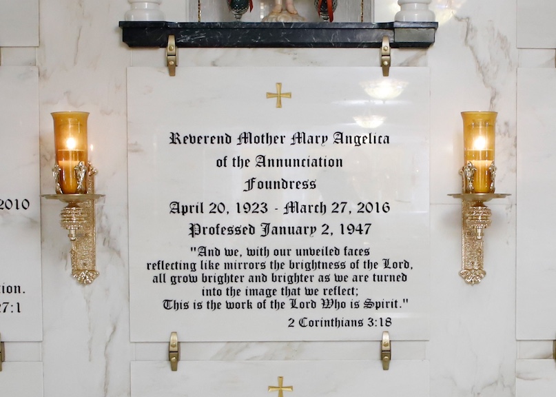 In 2001, Mother Angelica lost her speech after two major strokes. From 2002 till 2016, she lived bedridden, in contemplative prayer. A statue of the Child Jesus was set by her bed, just as the Infant of Prague rested by her childhood bed after her first healing in 1943. Mother Angelica passed away on Easter Sunday, March 27, 2016.