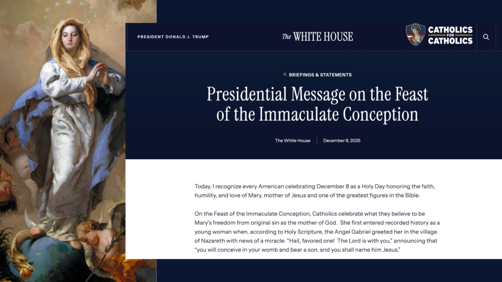 “Today, I recognize every American celebrating December 8 as a Holy Day honoring the faith, humility, and love of Mary, mother of Jesus and one of the greatest figures in the Bible.