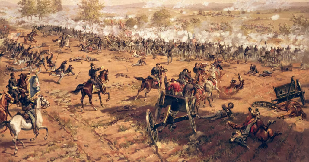 From here on out, Longstreet served in all of Lee’s crucial battles in 1862 and 1863, except the Battle of Chancellorsville. He was promoted to the rank of Lieutenant General in 1862. Once, after a battle defending Richmond, Lee declared that “Longstreet was the staff in [his] right hand.” Longstreet did advise Lee against his plans for the Battle of Gettysburg in July 1863. Even though Longstreet obeyed Lee’s order after their professional disagreement, despite most of Longstreet’s men dying and Longstreet himself nearly dying, Longstreet’ reputation would forever be tainted for opposing the South’s hero at such a turning point in the war.