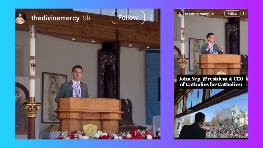 That is what we did yesterday at the Divine Mercy event, and I could not be more grateful to all of you for your support. We are humbled by your prayers and backing of Catholics for Catholics.